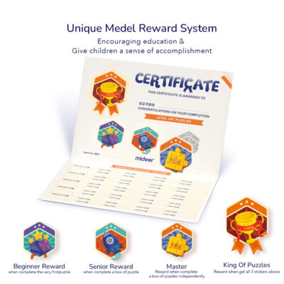 - Įtraukta: 4 galvosūkiai, 1 instrukcija, 1 tėvų vadovas, 1 sertifikatas, 1 lipdukas