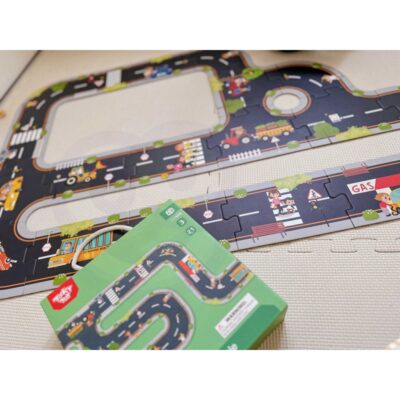 Ar jūsų atžalos nuolat klausinėja apie kelių infrastruktūrą? Galbūt leiskime jiems patiems su viskuo susipažinti iš arčiau?Tooky toy medinė dėlionė kvies pažinti gatvę ir svarbiausius jos elementus. Vaikai susipažins su tuo kas vyksta kelyje ir galės nutiesti savo gatvę. Kaip šaunu, kai galima ne tik pažaisti, bet ir mokytis tuo pačiu! Dėlionę patogu dėlioti. Dėl pakankamaididelio dydžio, joje puikiai tilps žaisliniai automobiliai. Tad gatvę galima naudoti ir kaip važinėjimo trasą, kuri kaskart gali būti kitokia! Štai kaip vystosi kūribiškumas ir vaizduotė!