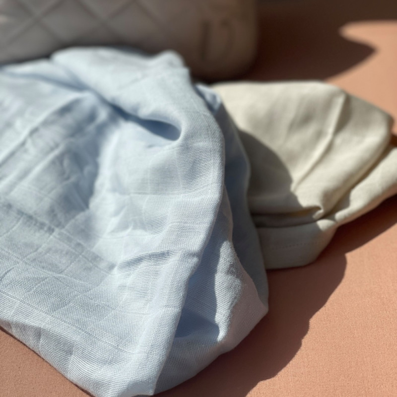 Muslino vystyklai kūdikiui pagaminti iš ekologiškos medvilnės be alergenų ir kenksmingų medžiagų..