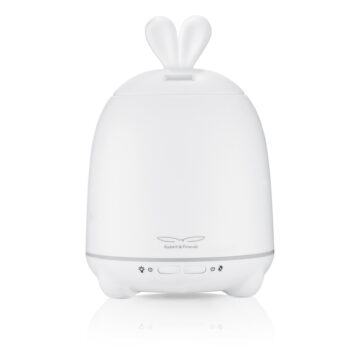 „Rabbit & Friends“ eterinių aliejų difuzorius su mielomis triušio ausytėmis suteikia oro drėgmės ir aromaterapijos naudą. Jis drėkina orą vaikų kambaryje švelniu, vėsiu ir saugiu garu bei padeda sukurti ramią, jaukią aplinką. Spalvas keičiantis LED apšvietimas užtikrina patogų naudojimą naktį, o prietaisas padeda vaikui ramiai ir sveikai miegoti.